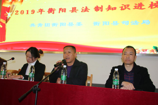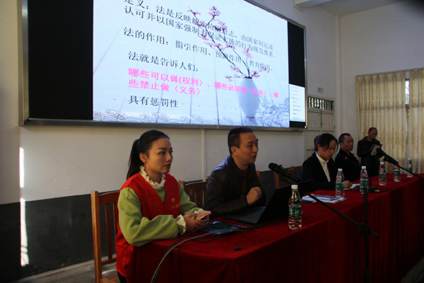 县委全面依法治县委员会办公室龙九阶同志说:今天我们在西渡中学重点宣传《未成年人保护法》、《预防未成年人犯罪法》和识毒、防毒基本知识,目的是增强学生的自我保护意识和法制观念,让同学们能奉法向上,健康成长。