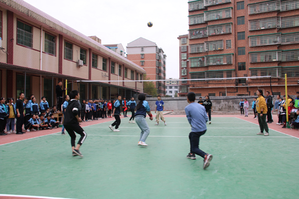 下午2:10,一声哨响,西渡中学排球场上的气氛顿时紧张起来。四场精彩的小组赛在各组的比赛场地同时上演,在球场上队员们互相尊重,互相学习。他们纷纷拿出自己的绝招,扣球、发球、一传,二传,每个环节都尽力发挥,严谨认真,场外教师和学生组成的啦啦队的加油、助威、呐喊声此起彼伏,一浪高过一浪。