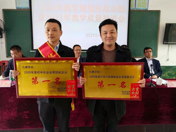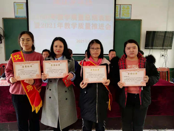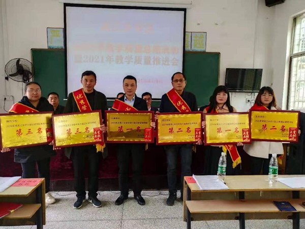 会议表彰了2020年初中组完小组村小组目标管理考核优胜单位、中考优胜单位、小六会考优胜单位、优秀教育管理工作者、教学先进个人、县青年教师课堂比武获奖教师。会上,荣获2020年度初中毕业会考和小六毕业会考双团体总分第一名的九峰学校杨斌校长,作先进管理经验分享;荣获县青年教师比武初中数学组第一名的富田中学杨楚英老师,作优秀教学方法分享。