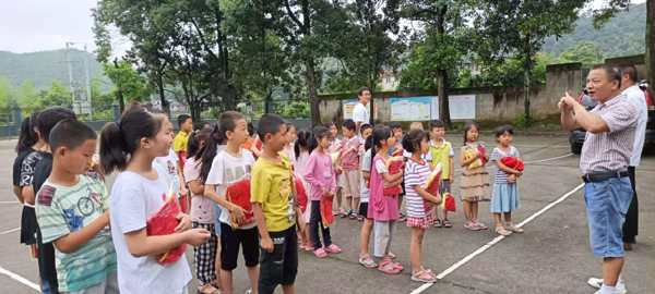 6月29日上午,衡阳县东山完小在校园内举行32套精美校服的捐赠仪式。宽敞整洁的校园内,彩旗飘飘,笑语不断。校长王远兵致辞,他对关心、支持学校的广州佛山衡阳商会吕玉红、李淑红夫妇(东山村坳背组)的爱心之举表示诚挚的感谢。此次赞助活动的目的,一是庆祝六一儿童节,二是建党百年华诞,二是对井头镇东山村的乡亲们进行答谢,吃水不忘挖井人,致富应当报党恩。捐赠仪式上,同学们依次领取衣服,换上新衣服的同学们细心地整理自己的新校服,生怕弄脏了,同学们你看着我,我看着你,脸上露出了开心的笑容。