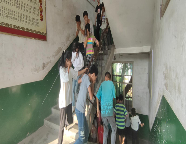消防演练活动开始时,各班老师迅速到达指定位置,第一时间组织学生进行疏散。学生们在老师的引导下,弯着腰、猫着步、用衣服袖子等捂住口鼻,沿着学校指定路线有序、快速撤离到安全地带。本次演练在谢教官的专业指导下、老师和学生的默契配合下,学生们动作快速、有序撤离,全程不超过一分钟,真正的做到快速、安全、有序。