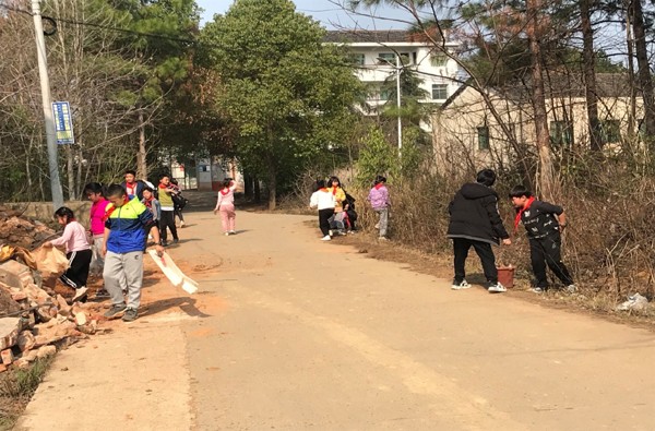 3月6日下午,台源镇花滩完小“学雷锋志愿服务队”开展了学雷锋活动月第一次志愿服务活动,捡拾和清扫进出校园的各条道路两边的垃圾(通讯员:屈孝生)。