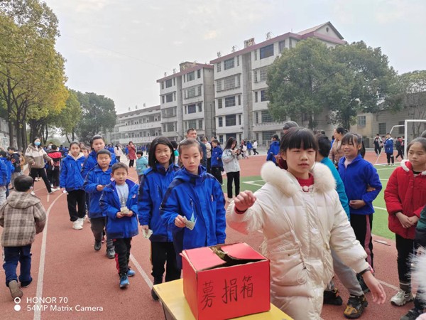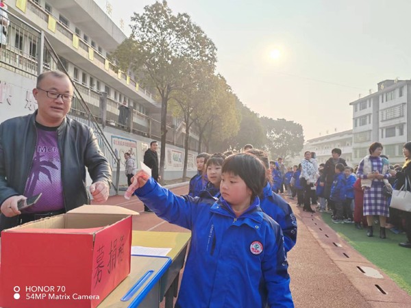 “只要人人都献出一点爱,世界将变成美好的人间……” 2月27日早晨,衡阳县金兰镇中心小学举行为二(4)班身患白血病的周某祺同学献爱心捐款活动。
