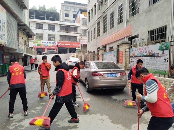 启动仪式结束后,志愿服务队的同学在袁彬、刘喜君主任的带领下、步行前往夏明翰广场进行“学雷锋”活动。志愿者在夏明翰广场进行清扫活动、发扬不怕脏、不怕累、全心全意为人民服务的雷锋精神、拿起自带的扫帚、垃圾铲将广场上宣传单、垃圾袋、烟头、杂草等一一清理,很快就使广场焕然一新,而他们也成了广场上一道亮丽的风景(通讯员:袁彬、刘喜君)。