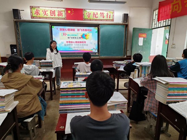 2023年中考临近,为缓解考生的考前压力与焦虑情绪,以健康积极的心态迎接中考,5月22日下午开始,衡阳县溪江乡富田中学以“激发心理潜能,放飞青春精彩”为主题,开展为期三天的系列中考前心理疏导活动。
