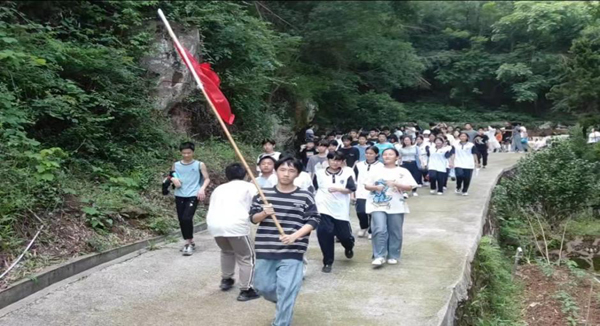 动员会结束后,初三年级全体学生在学校领导、班主任及任课老师的组织带领下,向着本次远足活动地点-宇石寨进发。“志之所趋,无远弗届”。一路上,同学们队列整齐,听从指挥,精神饱满,斗志昂扬,团结协作,坚持不懈。往返路程约8公里,徒步行走近2小时,无一人掉队,无安全事故发生,圆满完成活动任务。