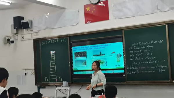 她设计的两队PK,闯关获取免费抵达下一站机票的环节,有效地提高了学生们的学习兴趣,激发了学生的竞争意识。当学生羞于表达时,她也能及时鼓励学生,为学生加油打气并给予帮助。