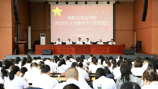 8月31日,衡阳县英南学校举行“抓班子、带队伍、转作风、守底线、促发展”主题活动暨2023年秋季开学工作部署会,全体教师参加。学校党支部书记杨小军、校长欧阳曙东分别作新学期动员讲话,副校长唐春潮、龙丹分别就分管的教育教学、安全卫生等工作进行安排并部署2023年秋季开学工作,副校长黄朝阳组织全体教师认真学习整治教育乱收费等相关文件精神。活动由该校党支部副书记、工会主席蒋林主持。