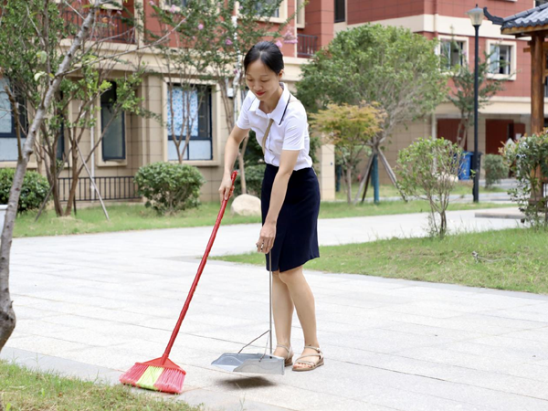 会后,全体教师自发进行学校卫生打扫,为2023年秋季开学营造良好氛围。