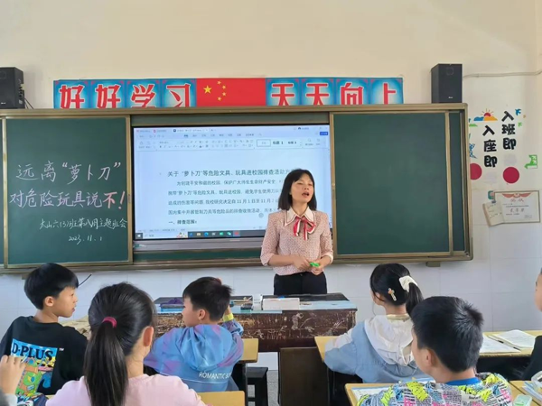 在太山小学,各班开展了一场别开生面的“萝卜刀”安全教育活动。班主任带领同学们认识“萝卜刀”,并通过现场演示和讲解的方式,让学生直观了解“萝卜刀”的危害。