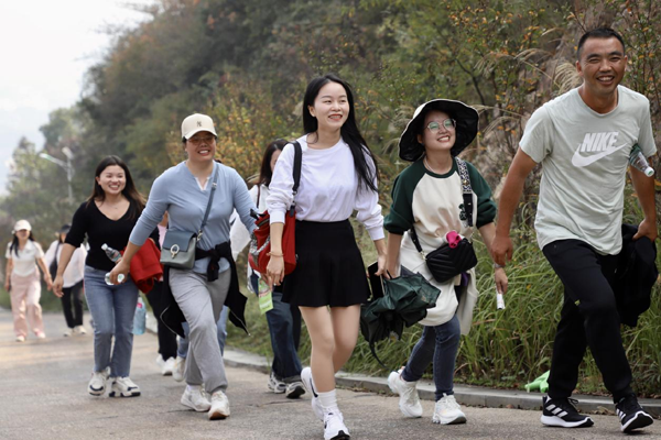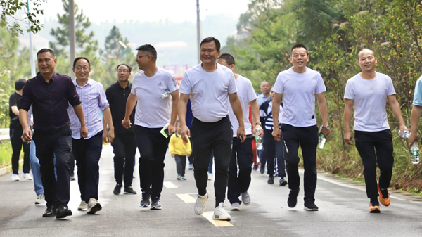 全体教职工从山脚出发,意气风发地向目的地前行。飒爽秋风里,山葱翠柏下,大家放松紧张的工作节奏,投入大自然的怀抱中,三五成群,或奔跑或慢走,一路欢声笑语,享受着运动休闲带来的愉悦心情。