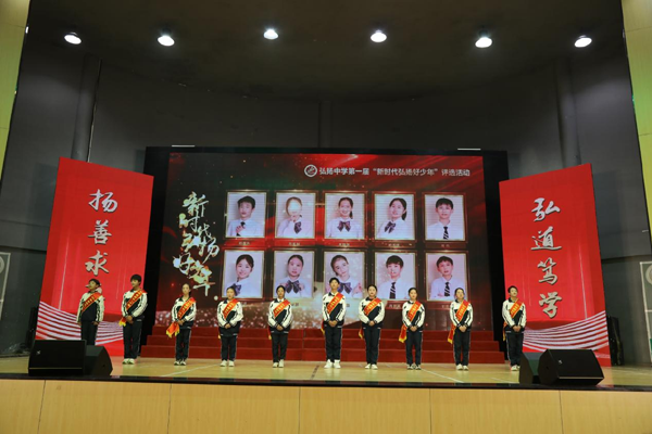 为加强未成年人思想道德建设工作,落实立德树人根本任务,大力培育和践行社会主义核心价值观,充分挖掘和展示新时代好少年的良好品德和美好形象,引领广大学生向上向善,2023年10月起,衡阳县弘扬中学开展了“寻找身边的好少年”评选活动。经逐级推荐、学校评审和校园公示等环节,杨康浩、刘泽林等10名同学被评为第一届“新时代弘扬好少年”。