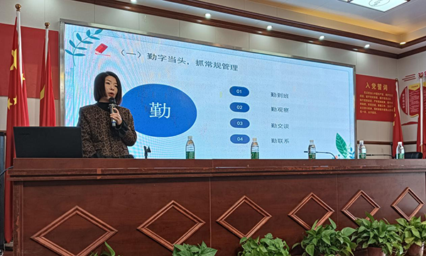 论坛上,八名优秀班主任代表结合自己的工作实际,从班级管理、学生教育、家校合作等方面进行了深入的探讨和交流。蒸阳中学班主任祝捷从严慈相济、理解尊重、亦师亦友三个方面分享了“与青春期的孩子过过招”;集兵中学班主任陈小霞从学会宽容、善于奖罚和践行教育大安全观三个方面,探讨如何化解班主任工作的岗位危机和风险现状;英南学校班主任陈淑媛从边界感、存在感、成就感和“合伙人”四个方面畅谈了家校共育方法。洪市中学班主任刘飞亚分享了如何通过心理健康教育有效缓解学生的学习压力和焦虑情绪。