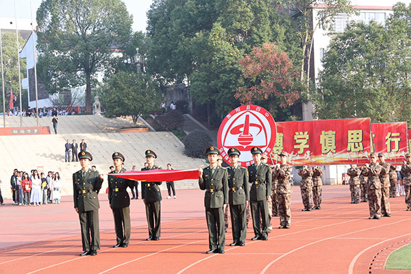 开幕式上,国旗、校徽、彩旗、鲜花、裁判、班级等方阵依次入场。班级入场环节,各班同学创意十足,风采各异。各类舞蹈串烧表演尽情彰显青春活力。升国旗,奏唱国歌,裁判员代表、运动员代表分别宣誓,学校总支书记涂宏平致辞,校长欧阳忠余宣布运动会开幕。