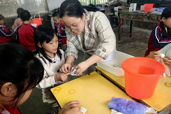 为推动中华优秀传统文化与教育深度融合,近日,界牌镇中心小学开展以“非遗扎染”为主题的艺术实践课程。此次活动旨在将美育、劳育与德育有机结合,让学生在亲身实践中感受非遗魅力,提升综合素养。