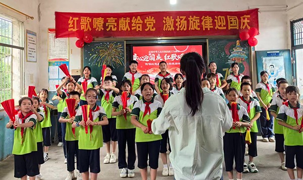 “遥远的东方有一条江,它的名字就叫长江……”9月29日,衡阳县岣嵝联合学校高峰小学校园里,一曲《龙的传人》深情唱响,拉开了全乡“红心向党、歌唱祖国”庆国庆红歌大赛的序幕。