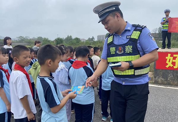 9月30日,衡阳县交通警察大队四中队警官来到洪市镇太山完小,围绕“迎国庆、保安全”主题,为同学们送上假期安全“大礼包”,将安全意识深植每一位学子心中。