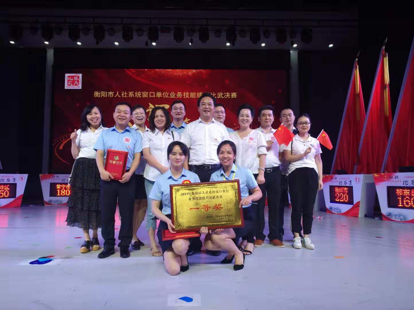 衡阳县人社局代表队黄高兴、陈信、肖丽萍、李科辉、周鸿宇等5名同志在全市练兵比武活动决赛中取得优异成绩,荣获全市团体一等奖。其中,黄高兴获得个人一等奖,肖丽萍、李科辉获得个人二等奖,周鸿宇获得个人三等奖,陈信获得个人优胜奖。