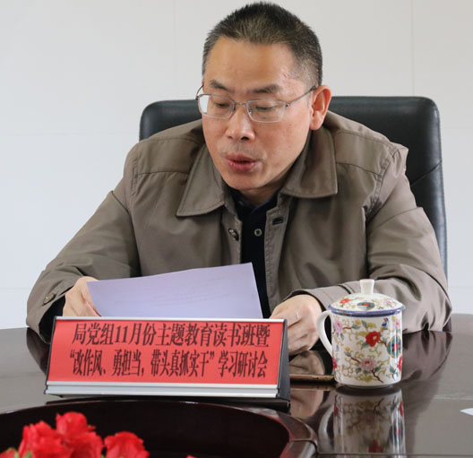 11月7日,衡阳县市场监管局党组书记、局长李小龙主持召开党组11月份主题教育读书班暨“改作风、勇担当,带头真抓实干”学习研讨会,局班子成员、副主任科员和人教、办公室、机关党委、个私协秘书处等部门负责人及纪检监察员参加。