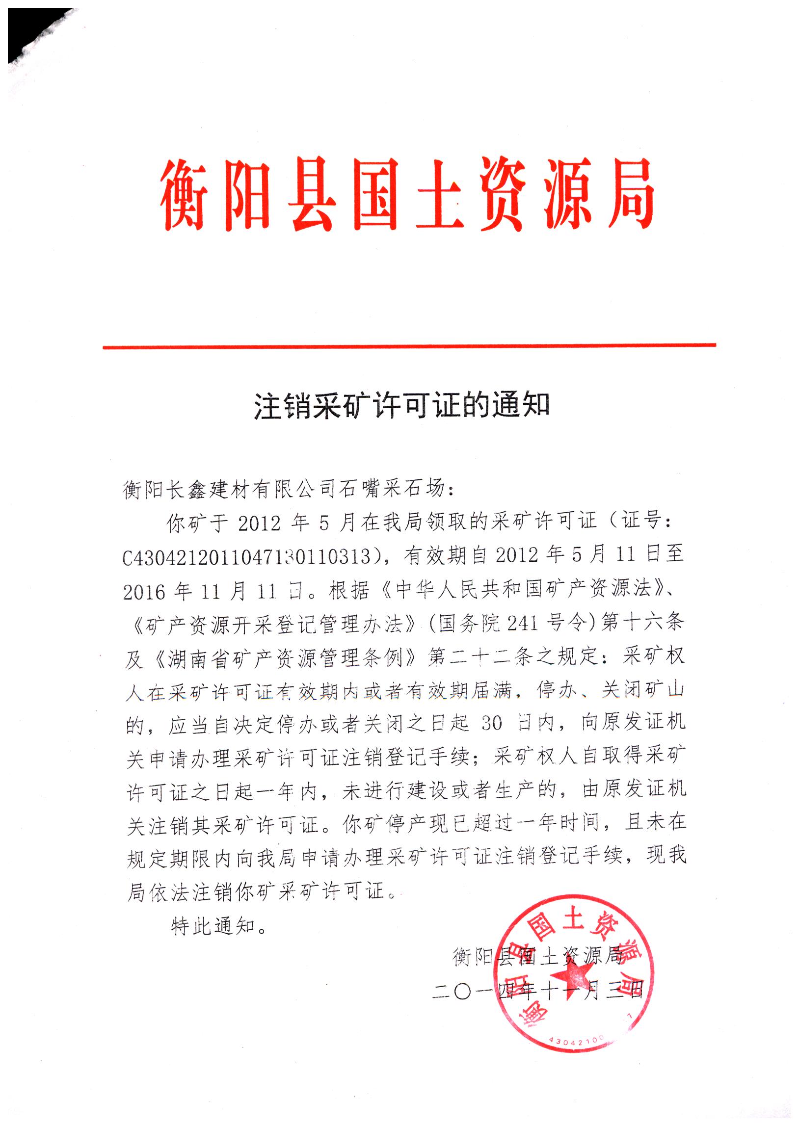 注销采矿许可证的通知