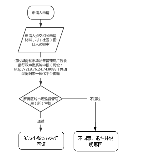 六、材料清单:1.《湖南省小餐饮经营许可证》申请书;2.申请人的身份证明复印件;3.营业执照复印件;4.生产经营场地设备布局和卫生设施说明;5.食品安全的管理制度;