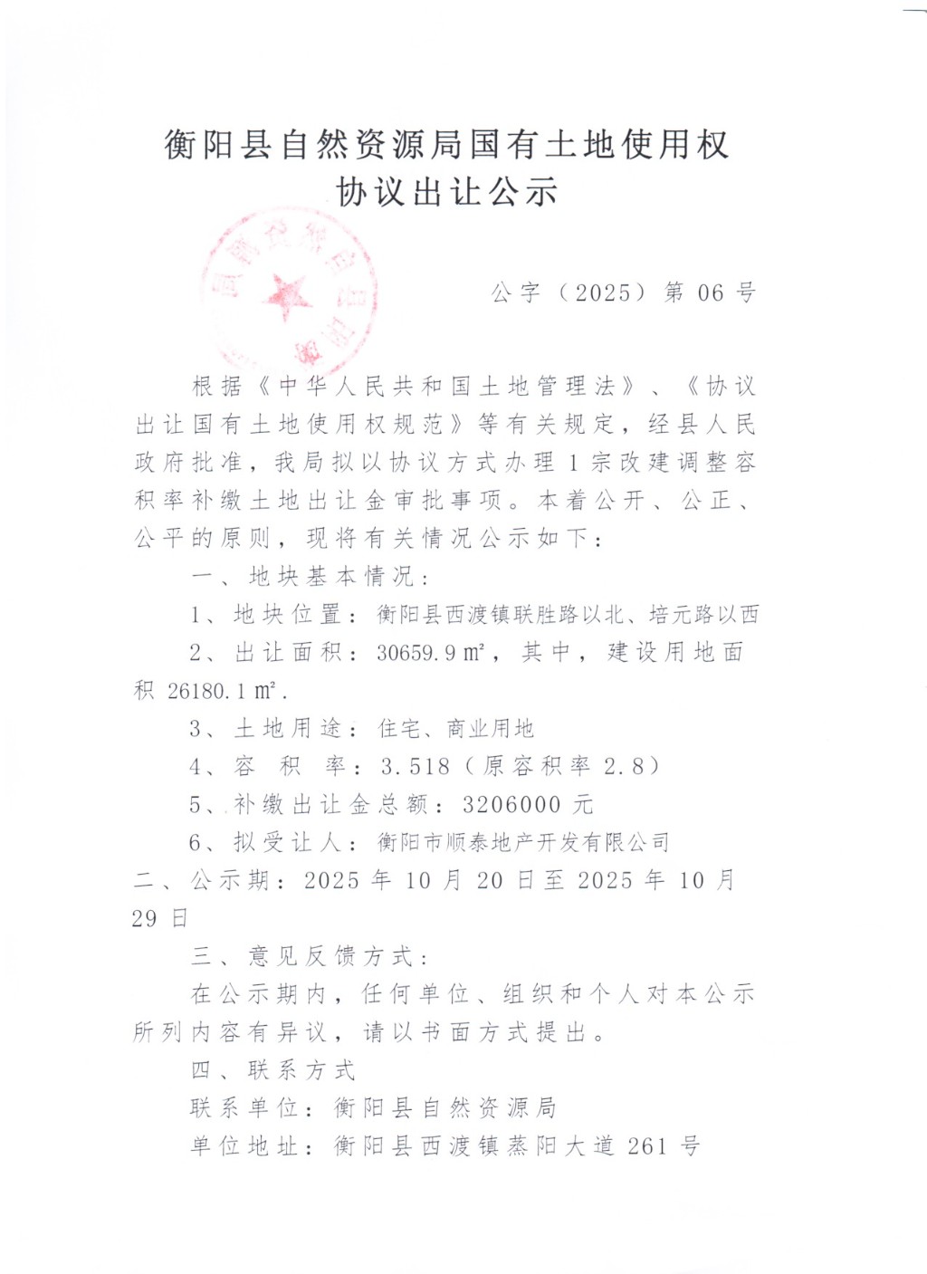 公字(2025)第06号国有土地使用权协议出让公示