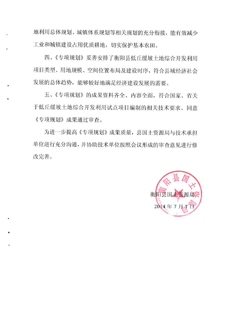 关于《衡阳市低丘缓坡土地综合开发利用专项规划》(2012-2016年)