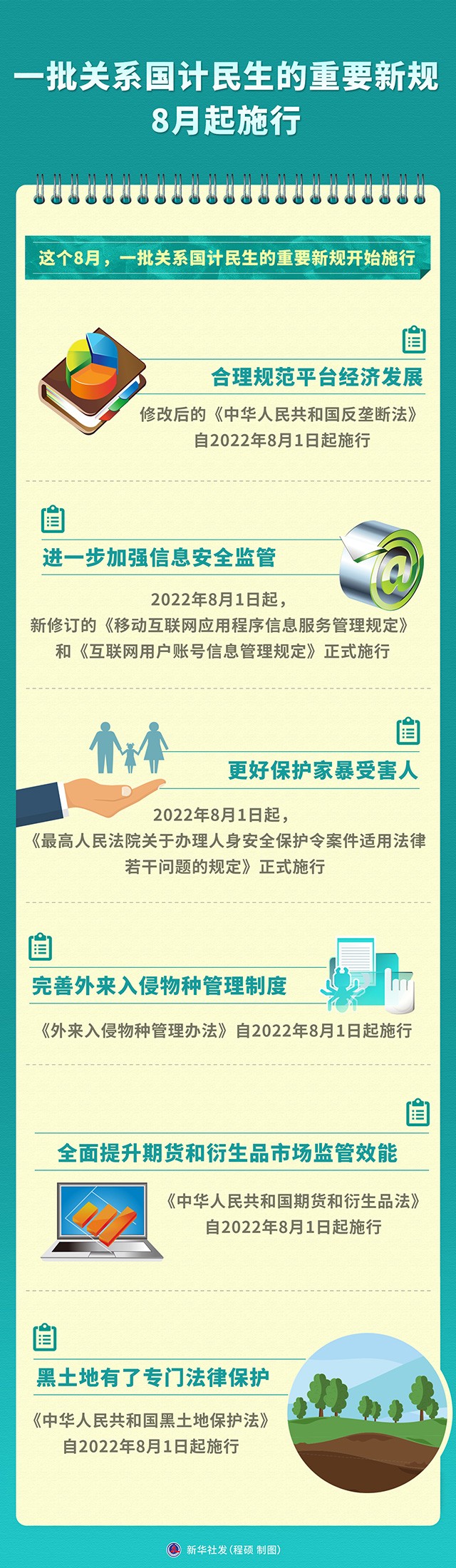 这个8月,一批关系国计民生的重要新规开始施行。从完善反垄断法律制度,到加强信息安全监管,再到扩大人身安全保护令适用范围……更完善的法治,护航更美好的生活。