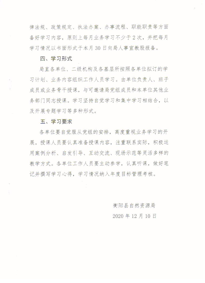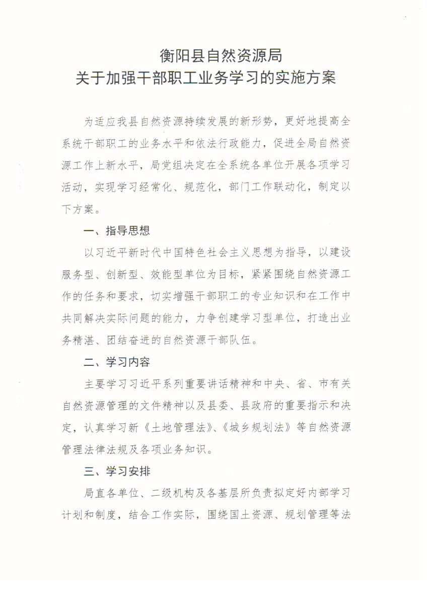 蒸自然资【2020】130号关于《衡阳县自然资源局关于加强干部职工业务学习的实施方案》的通知
