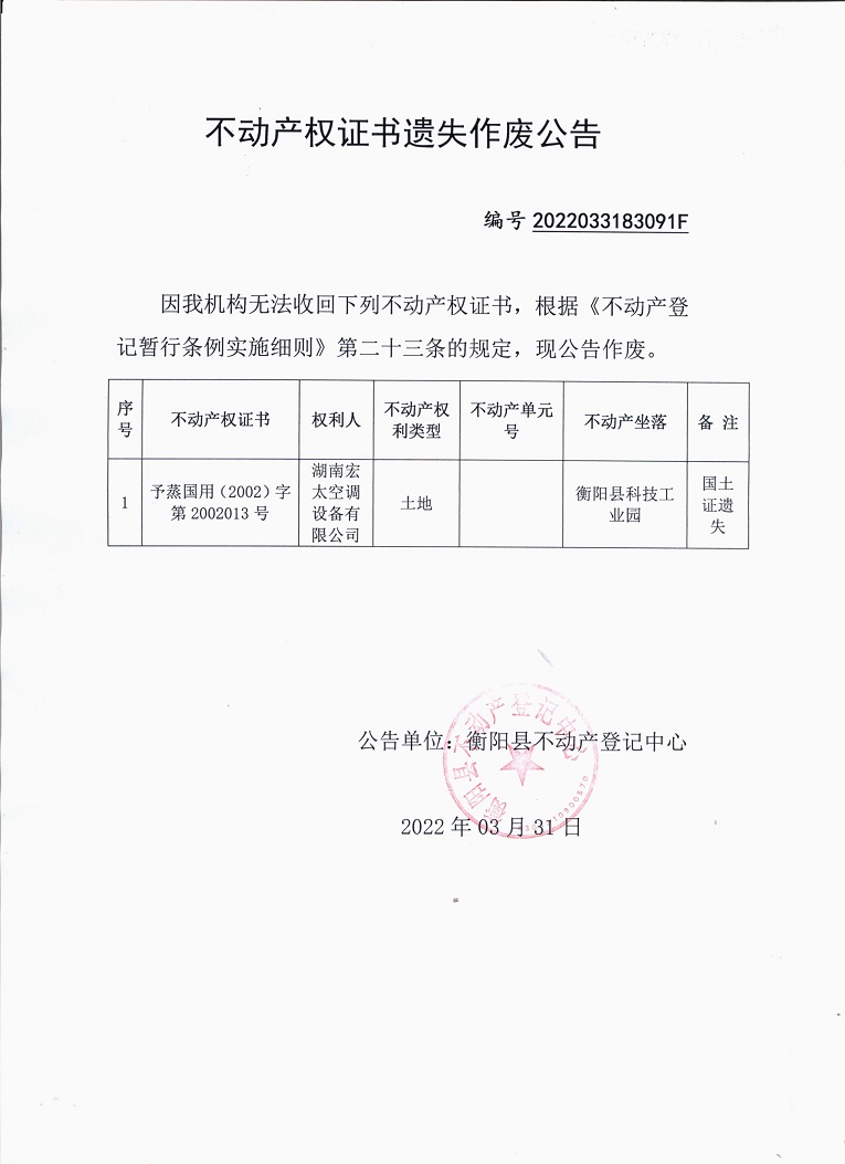 关于予蒸国用(2002)字第2002013号国有土地使用证遗失作废公告