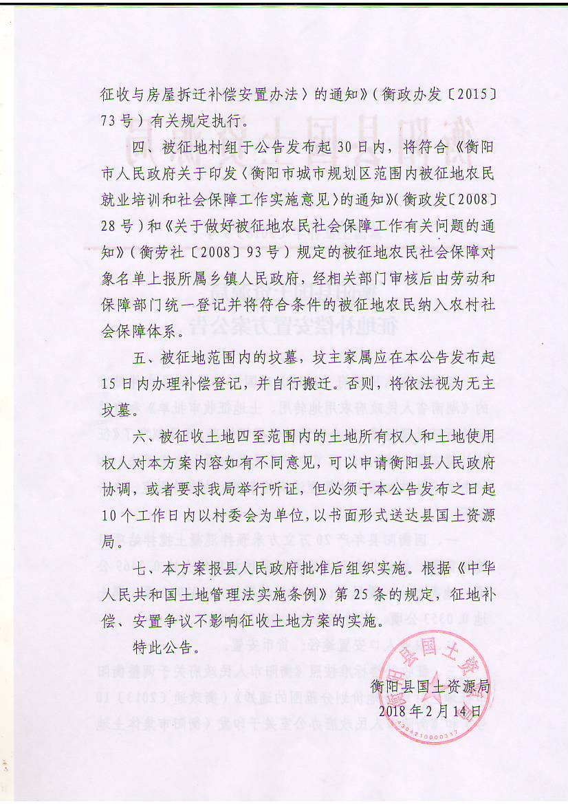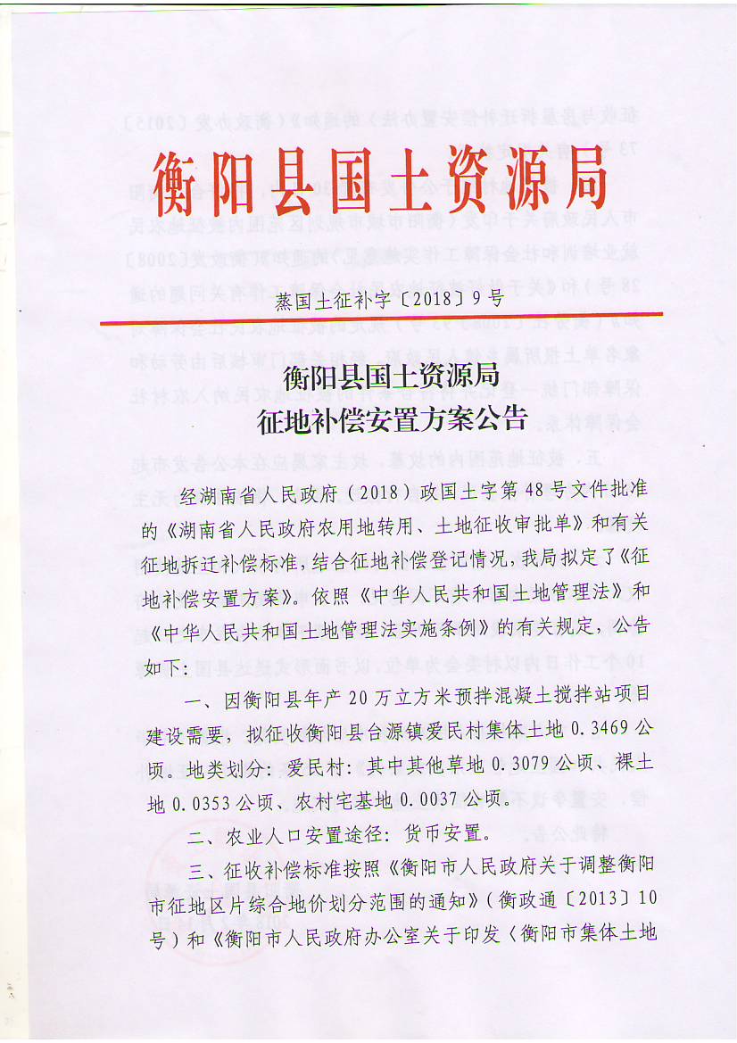 征地补偿安置方案公告蒸国土征补字【2018】9号