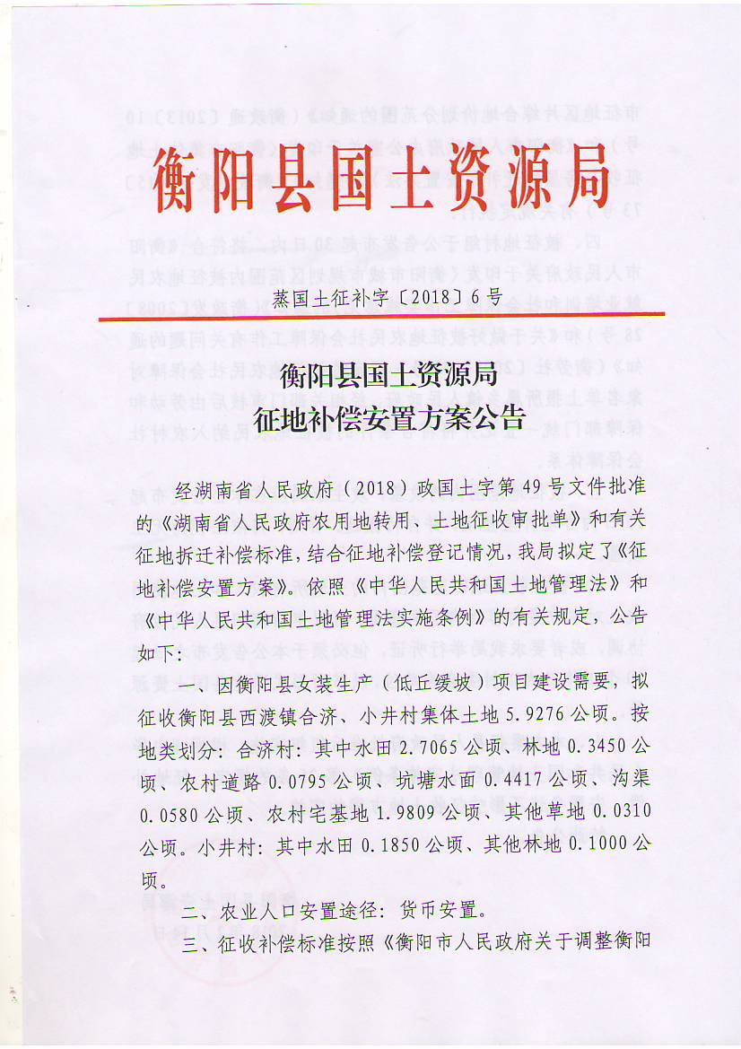 征地补偿安置方案公告蒸国土征补字【2018】6号