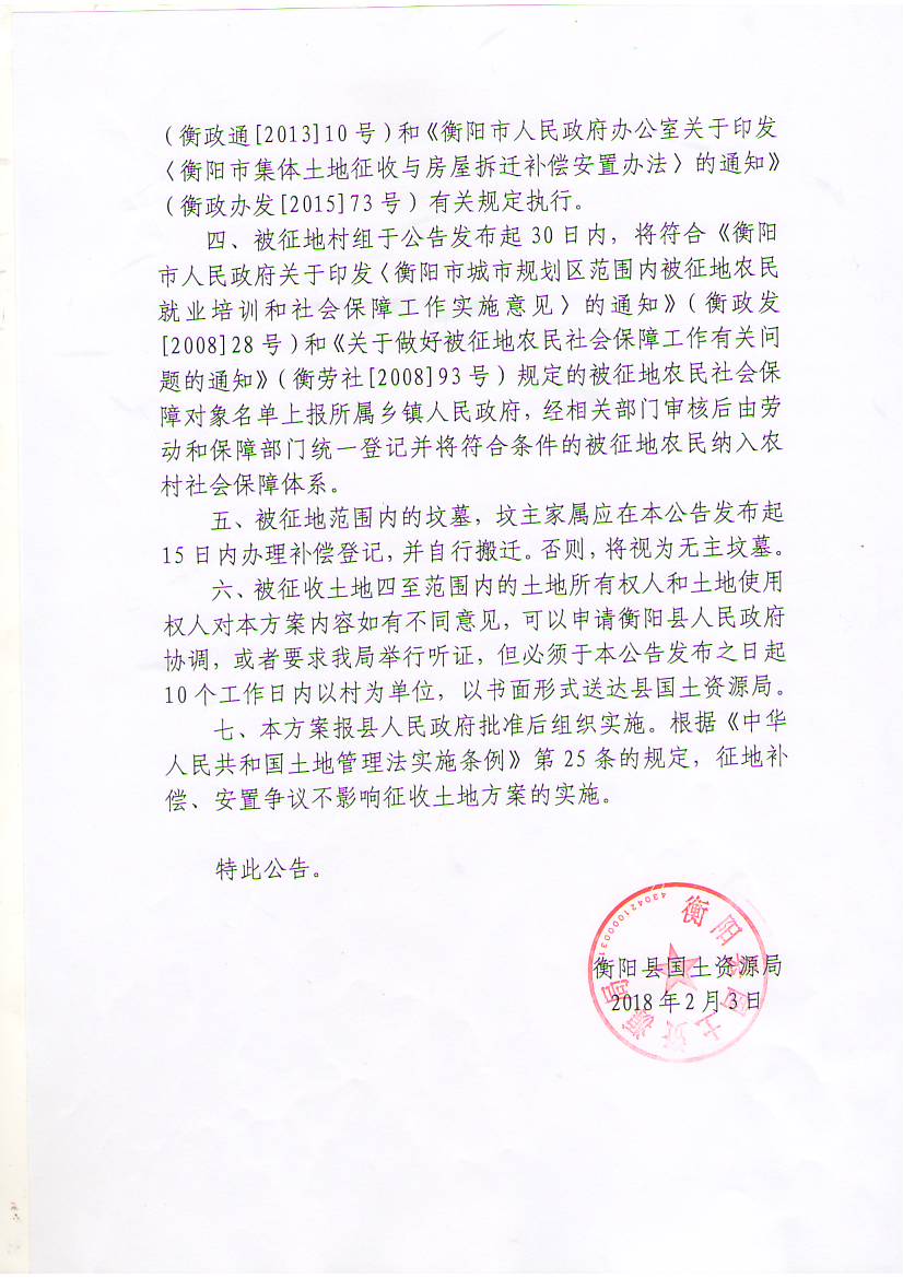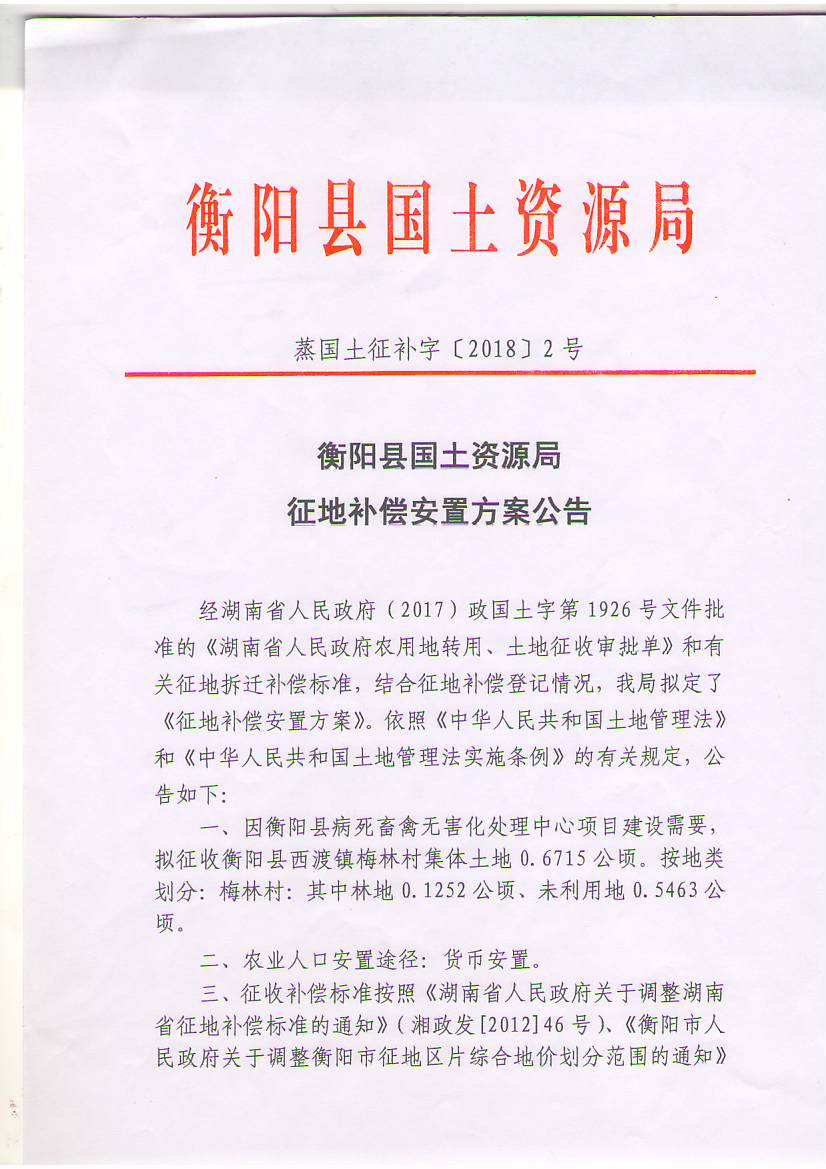 征地补偿安置方案公告蒸国土征补字【2018】2号