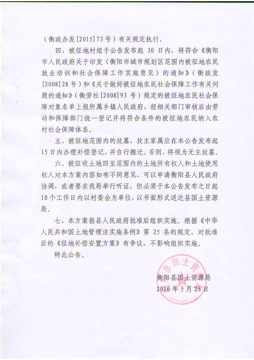 蒸国土征补字【2016】10号征地补偿安置方案公告