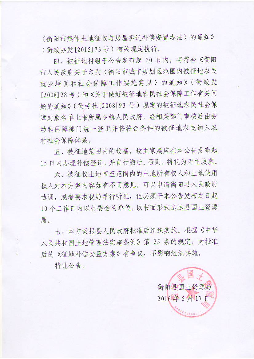 蒸国土征补字【2016】8号征地补偿安置方案公告