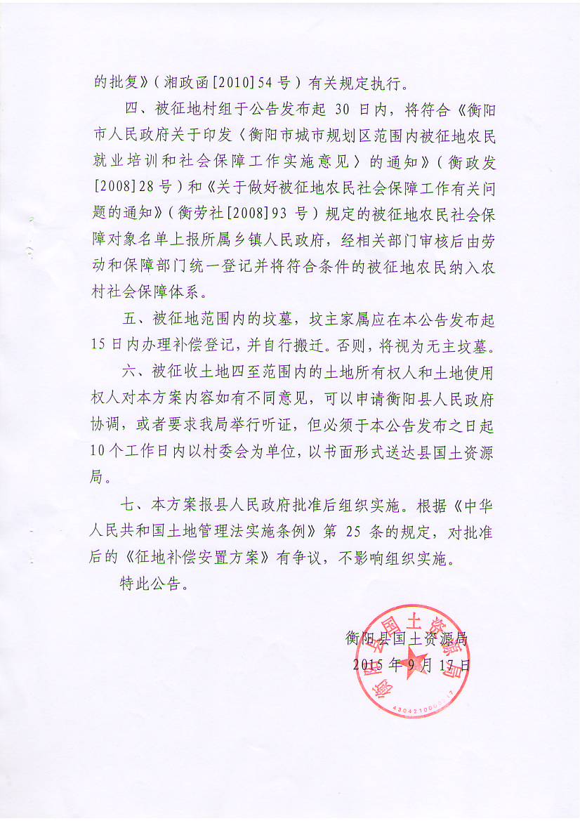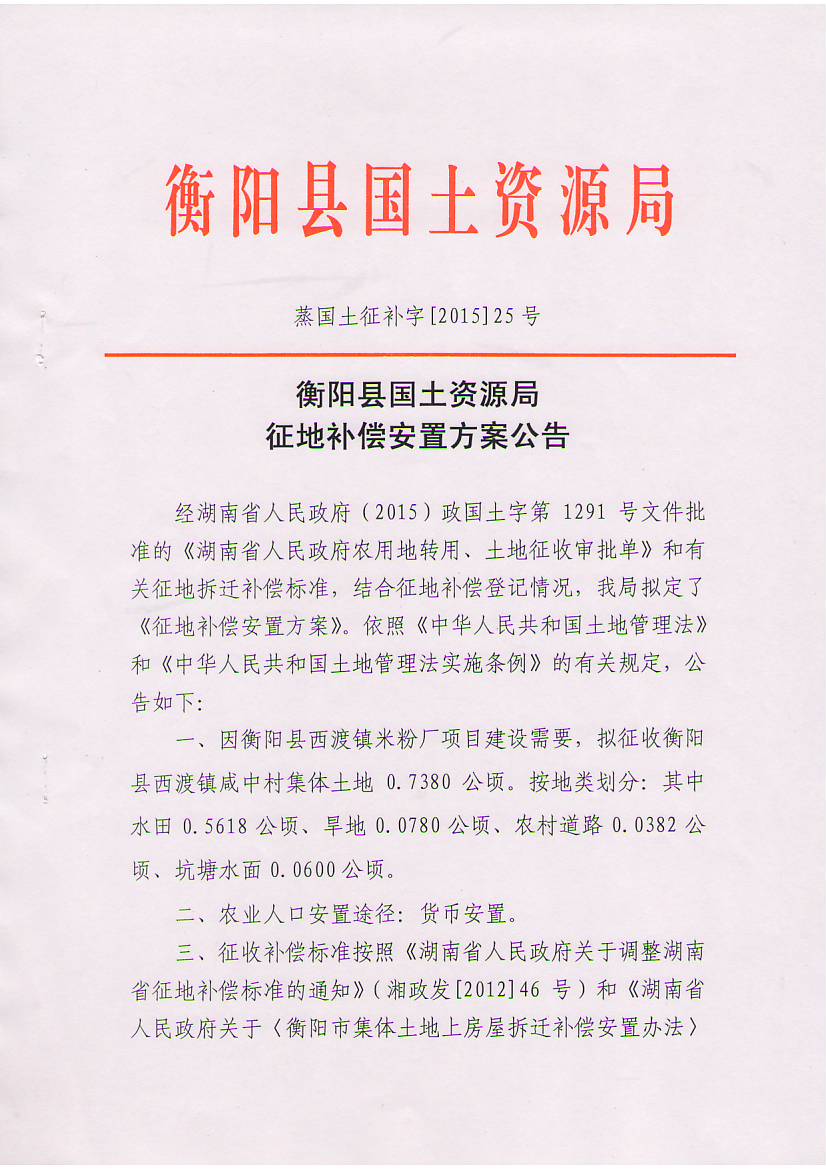 蒸国土征补字【2015】25号征地补偿安置方案公告