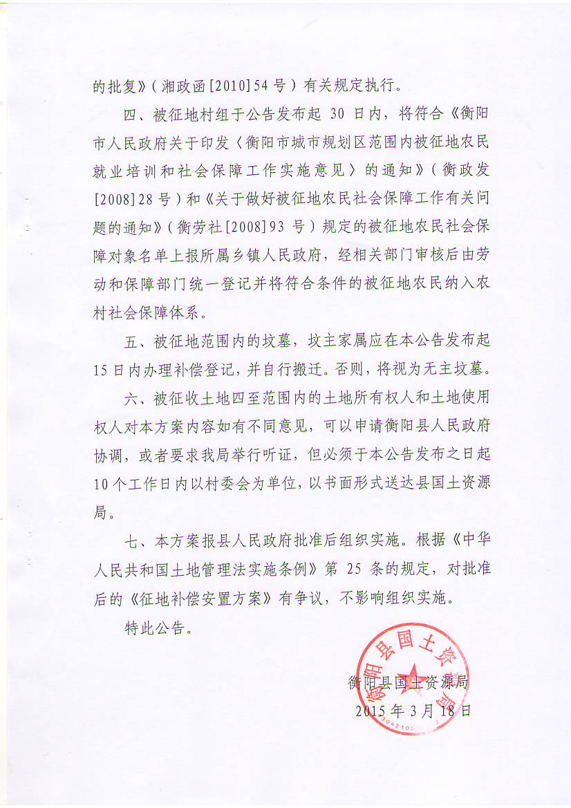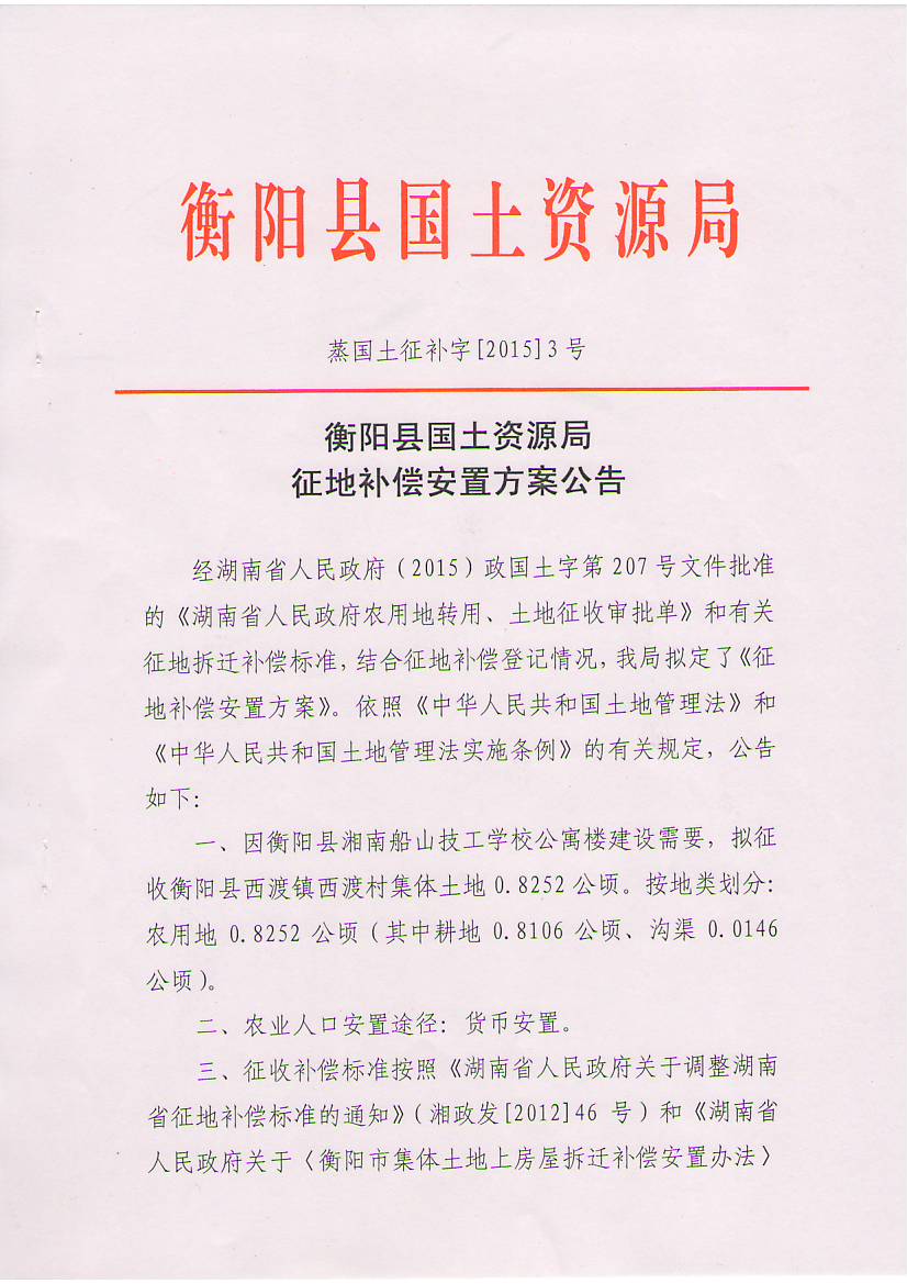 蒸国土征补字【2015】3号征地补偿安置方案公告