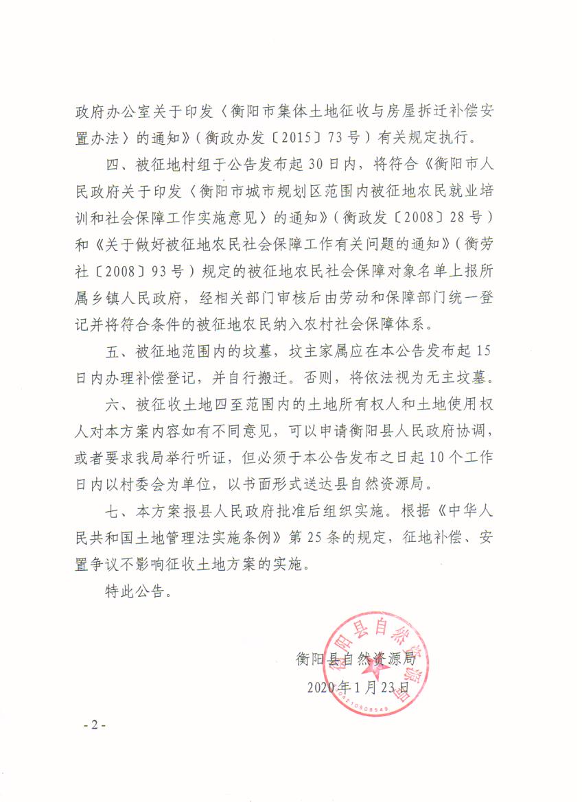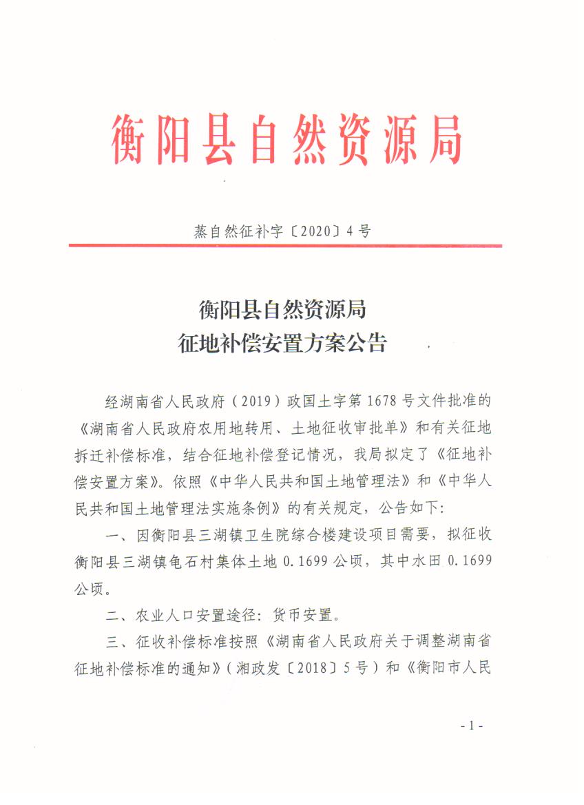 蒸自然征补字[2020]4号 征地补偿安置方案公告