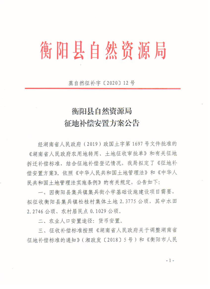 蒸自然征补字[2020]12号 征地补偿安置方案公告