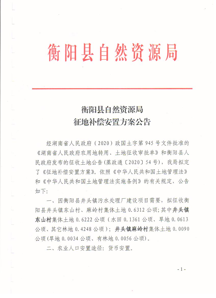 蒸自然征补字【2020】54号征地补偿安置方案公告