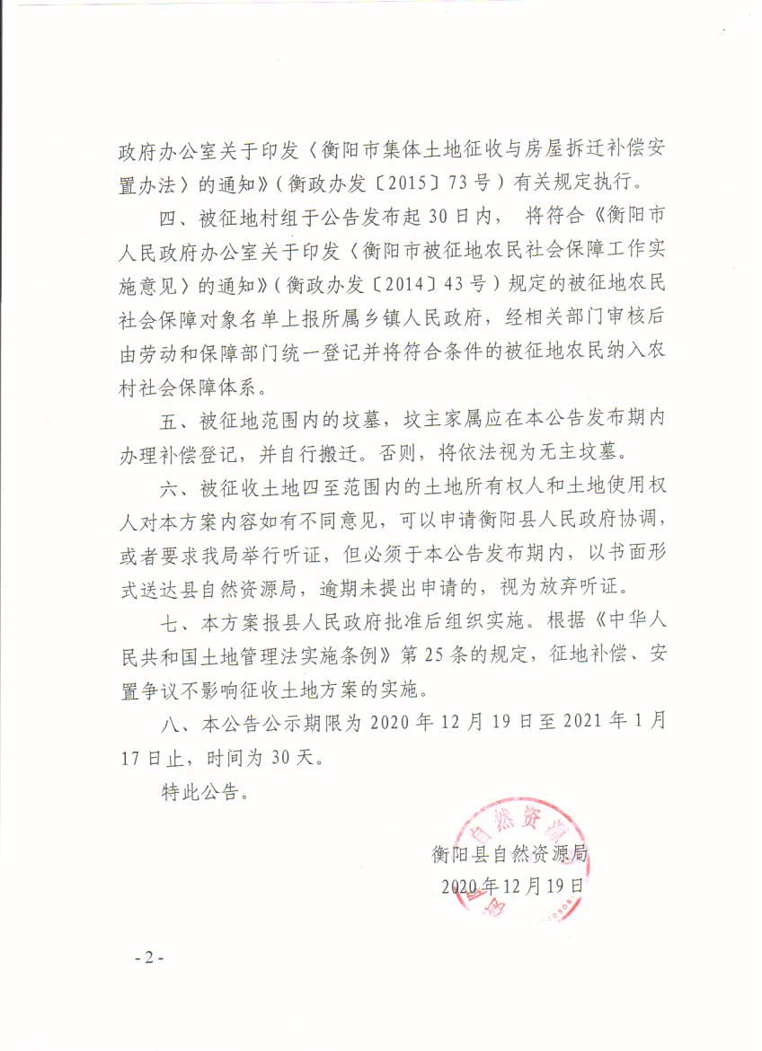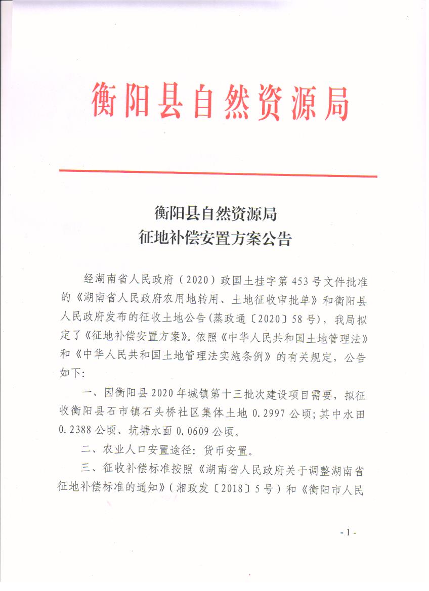 蒸自然征补字【2020】58号征地补偿安置方案公告