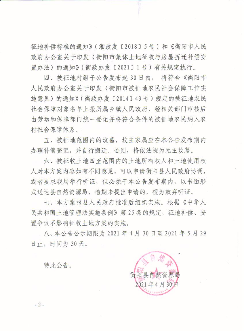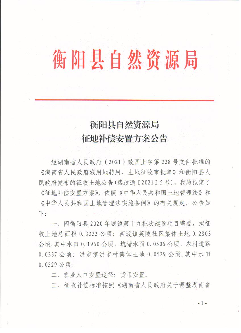 蒸自然征补字【2021】5号征地补偿安置方案公告
