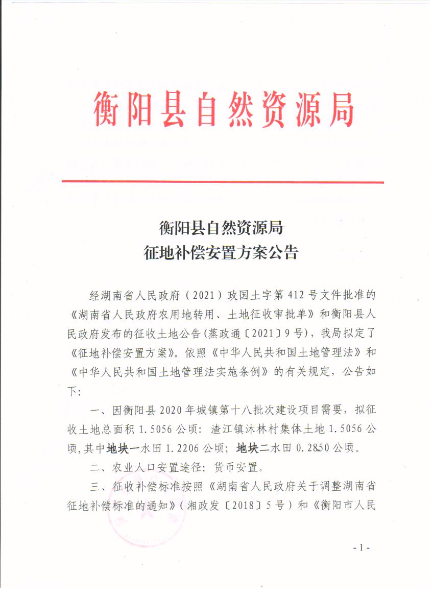 蒸自然征补字【2021】9号征地补偿安置方案公告