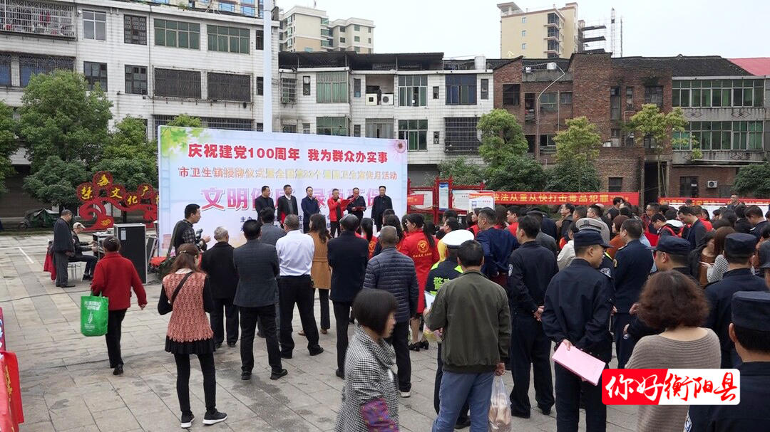 4月20日,副县长唐仕海来到渣江镇文德文化广场,现场督导第33个“爱国卫生月”宣传活动。