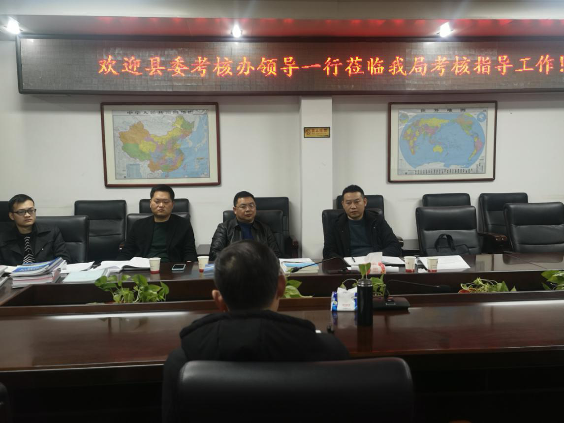 1月27日上午,县委办副主任陈耀云带队对我局进行年终考核,局长唐桂生作汇报。考核办一行对我局一年来的工作感到满意,并表示有望进入省行政审批服务局先进行列。