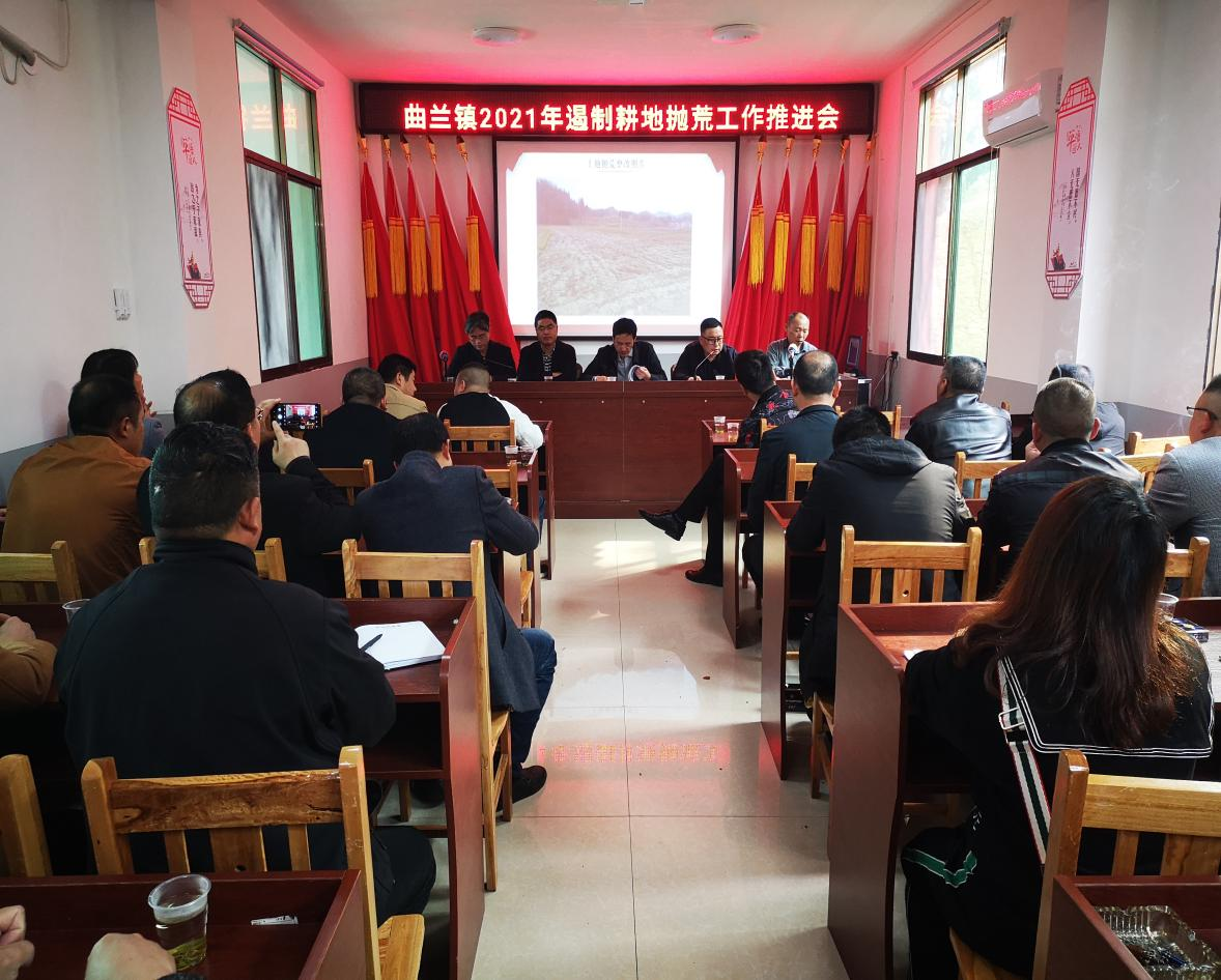 2021年3月29日上午9时,曲兰镇在阳亭村召开遏制耕地抛荒工作推进会,镇全体党政领导、包村干部、村支部书记参会。