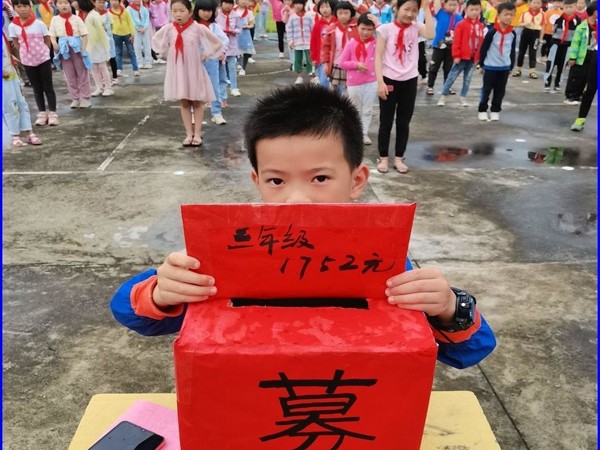 5月11号上午,募捐活动在学校操场上举行。中心小学及中心幼儿园全体教职员工现金捐款合计4090元;社会爱心人士捐款1000元;一年级全体学生现金及平台捐款合计941元;二年级全体学生现金及平台捐款合计1036元;三年级全体学生现金及平台捐款合计2142元; 四年级全体学生现金及平台捐款合计1158元;五年级全体学生现金及平台捐款合计1697元;六一班全体学生现金及平台捐款合计743元;六二班全体学生现金及平台捐款合计1838元。