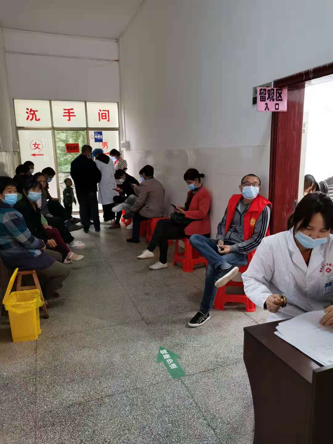 连日来,石市镇新冠疫苗接种工作正在如火如荼进行中。5月20日,在石市镇卫生院接种门诊疫苗接种正式开始,工作人员正在组织村民排队登记、接种、观察。登记室、接种室、留观处的墙上和地上都设置有疫苗接种前和接种后注意事项的标识。