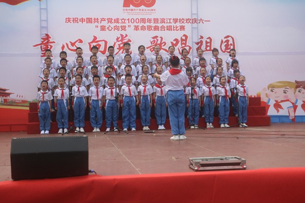 鲜艳的国旗高高飘扬,嘹亮的歌声响彻云霄,可爱的笑脸如花绽放。在这快乐的日子里,滨江学校全体师生迎来了孩子们的盛大节日--六一国际儿童节。在这普天同庆的盛大节日里,我校隆重举行了庆祝中国共产党成立100周年暨庆祝六一“童心向党”革命歌曲合唱比赛。