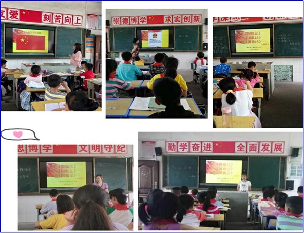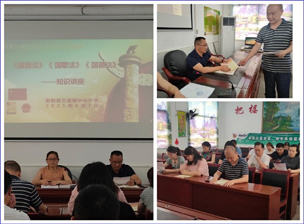 国旗、国徽、国歌代表着国家的尊严,是民族精神、爱国主义精神的集中体现。向建党一百周年献礼,6月7日,衡阳县三湖镇中心小学组织全校师生开展了《国旗法》、《国歌法》、《国徽法》学习宣传教育实践活动,旨在增强教师的爱国热情,培养学生传承红色基因,争做新时代接班人。
